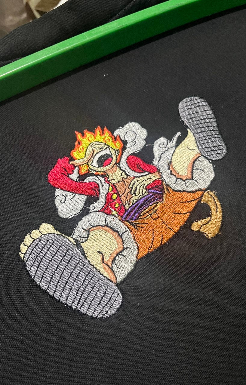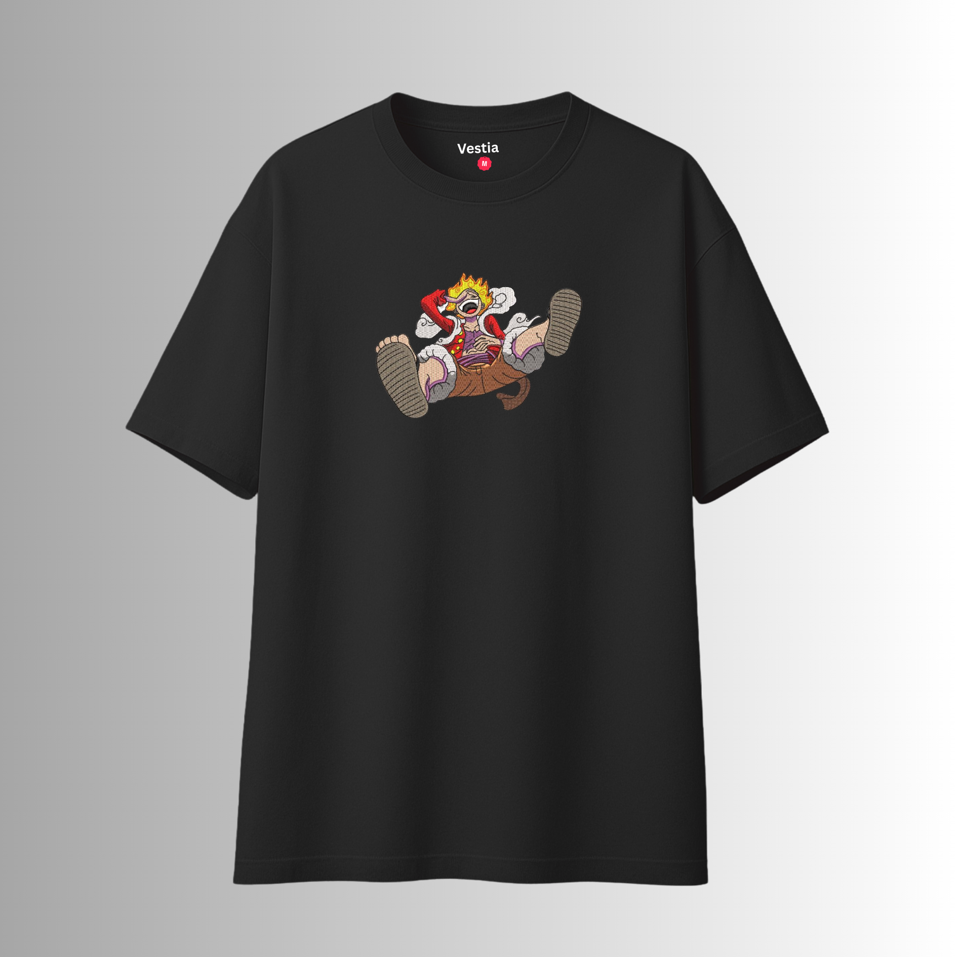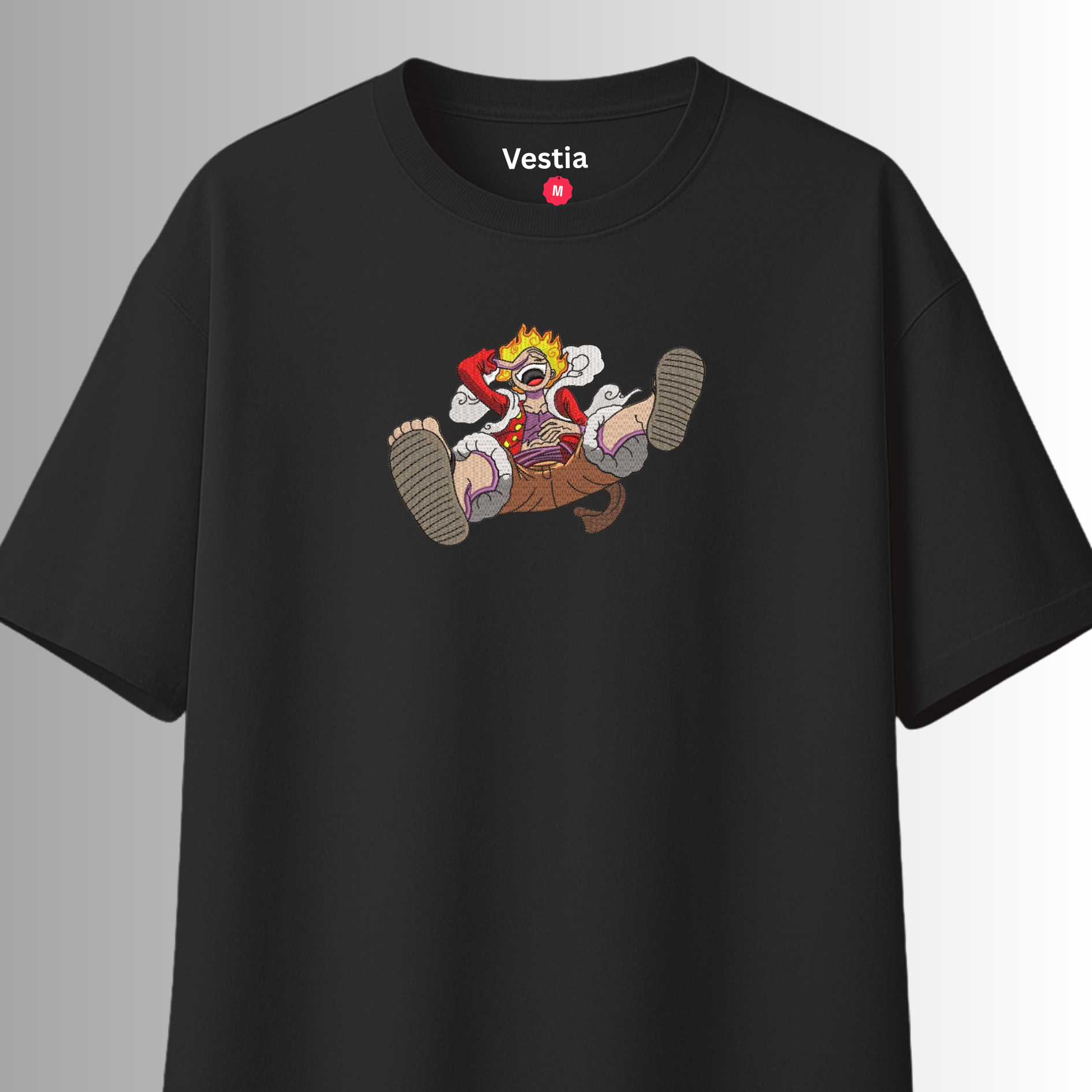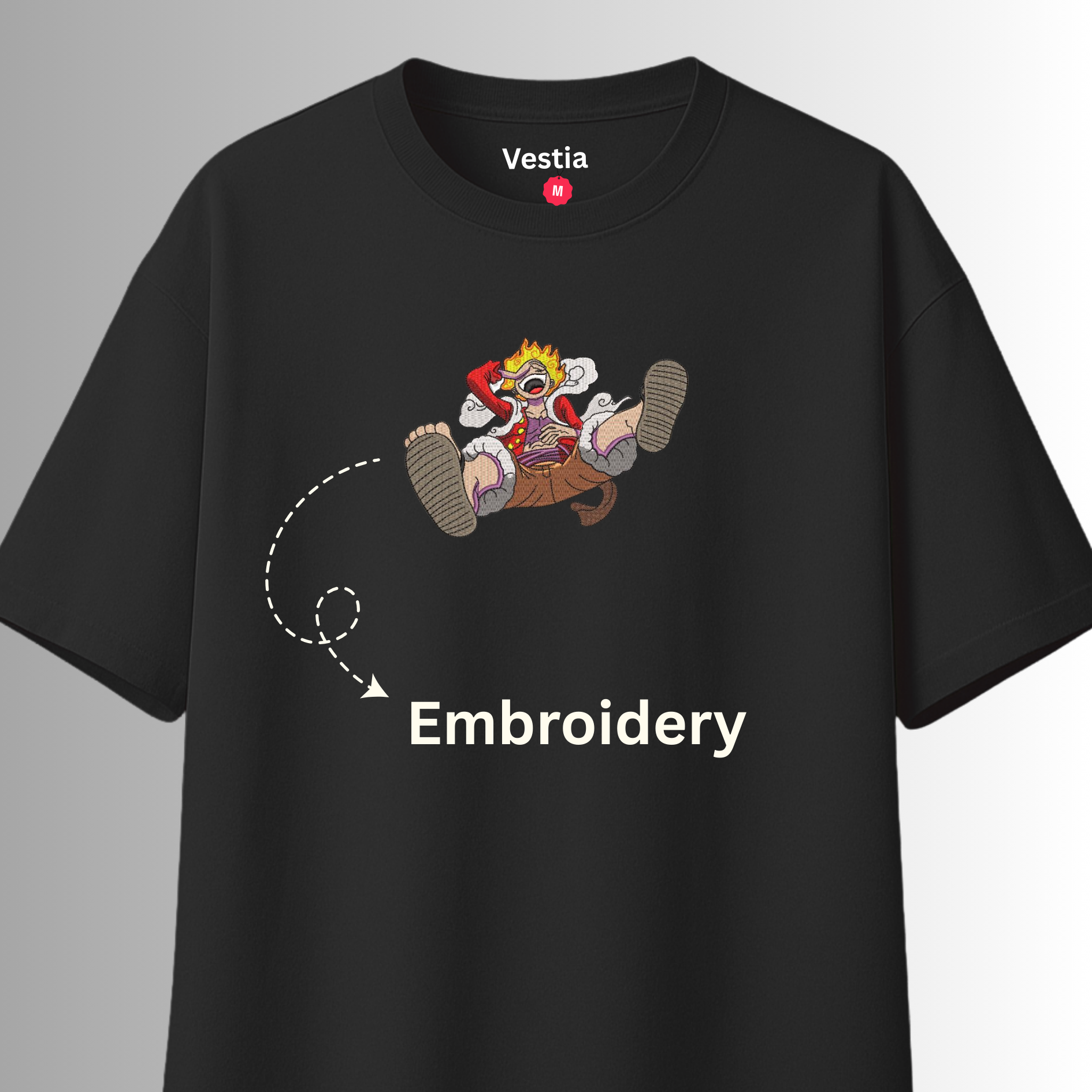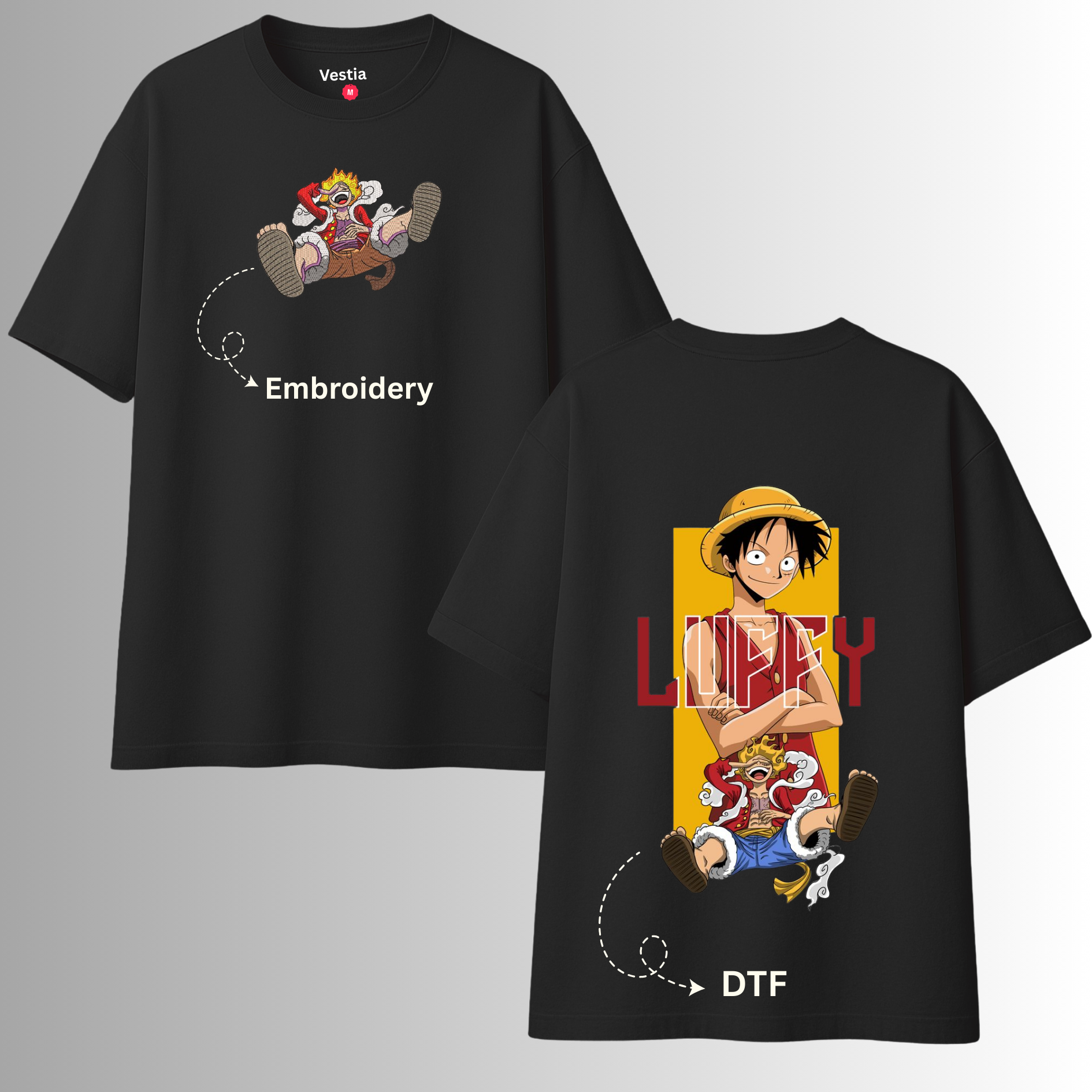 Luffy One Piece Anime T-Shirt – Embroidery & DTF Combo | Premium Oversized Tee by Vestia