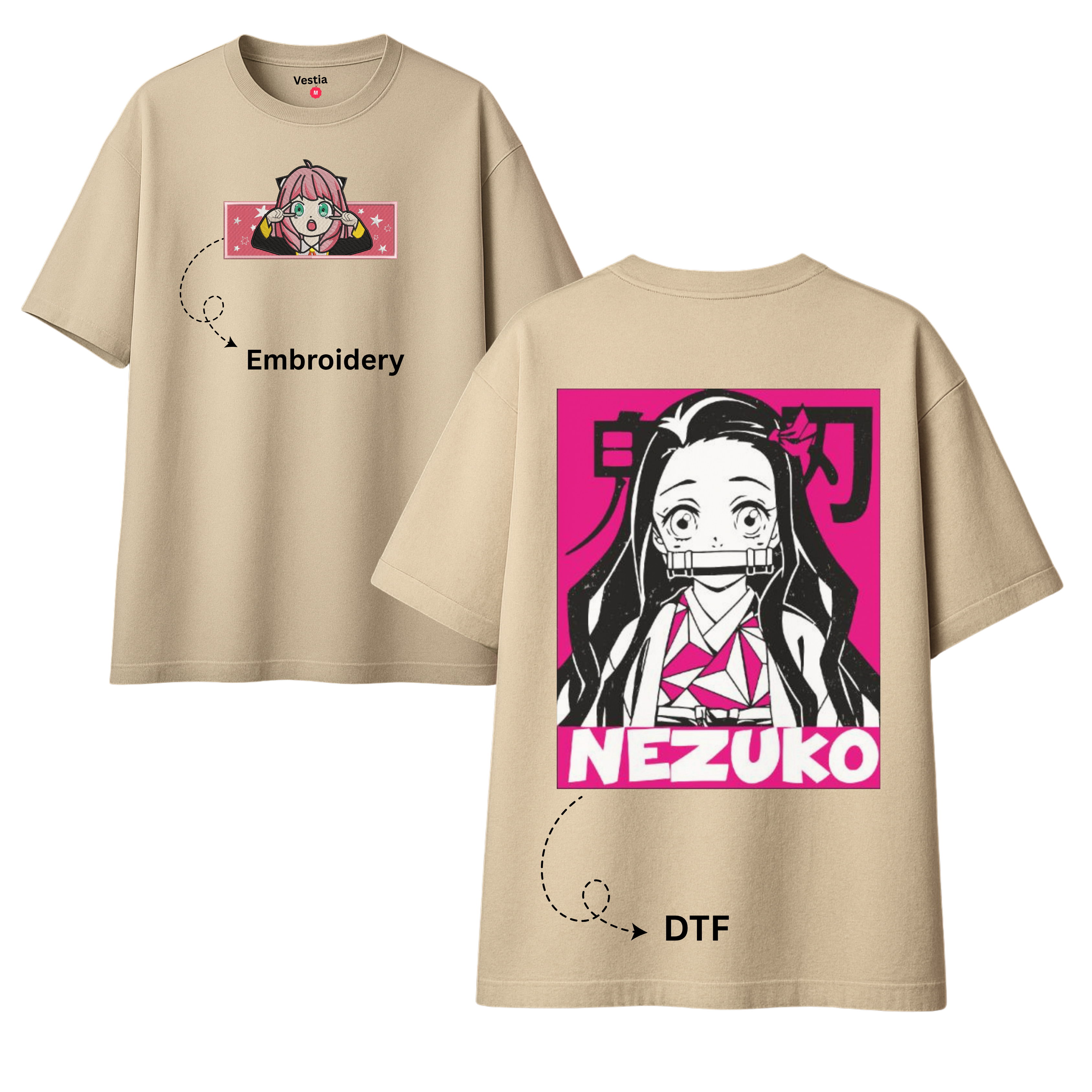Nezuko Kamado Anime T-Shirt – Embroidery & DTF Combo | Demon Slayer Premium Tee by Vestia